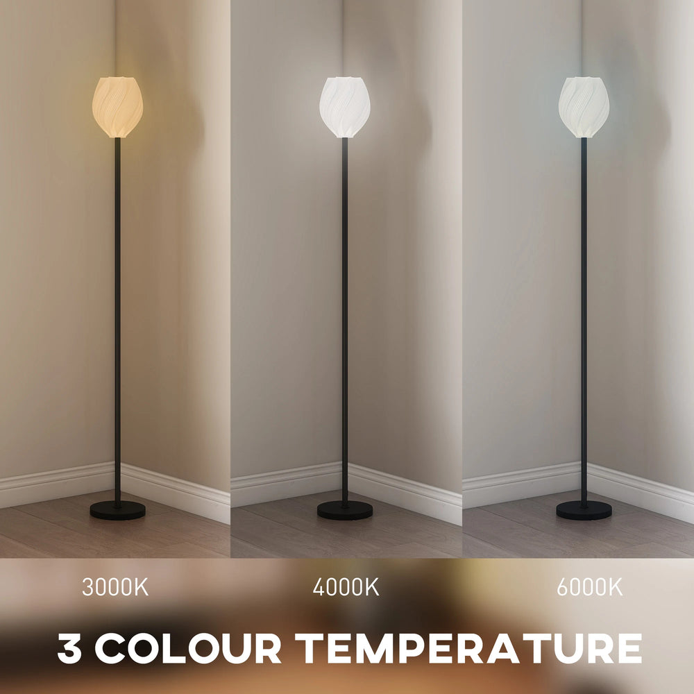 Light up your space with elegance using the HOMCOM floor lamp, featuring a stunning 3D printed rose design lampshade. This standard lamp comes with a convenient foot switch and adjustable colour temperatures of 3000K, 4000K and 6000K, which is great for creating a cosy ambiance. Its chic design elevates any room, making it a stylish choice for a standing lamp.