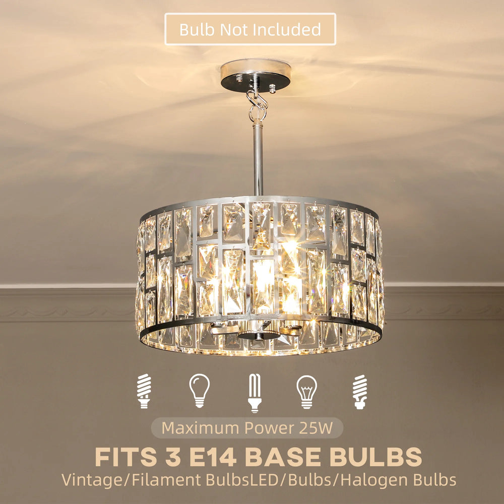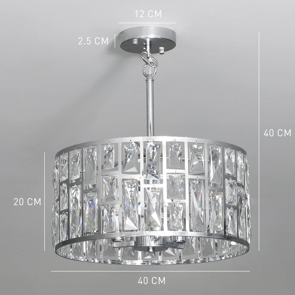 A forever-sparkling centrepiece for all over your home - this HOMCOM ceiling light offers both flush mount and hanging chandelier options, fitting any room. A strong metal frame, formed into a grid design with 72 glass crystallite pieces placed throughout - allowing the light from the three bulbs to shine through and glisten: a beautiful centrepiece for hallways, bedrooms livings rooms - and wherever else you want.