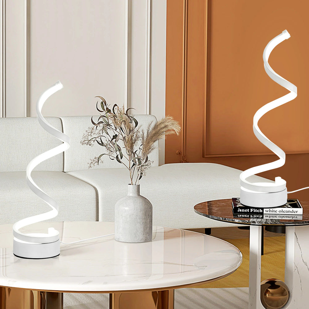 Bring a unique feel to home light with this modern table lamp from HOMCOM. The central LED light is shaped into a cool spiral designand emit a 800lm so your area is effectively lit up. Cool white in colour, the 6000k emits a daylight-style glow without damaged the eyes. Frame is made from firm aluminium and is finished with a large base to keep it balanced.