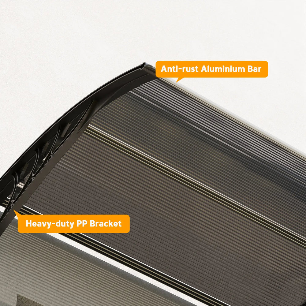 - Curved polycarbonate shelter: Resistant to light-medium rain and gentle snow, this front door canopy helps protect the outside of your doors and windows from sunlight and more, allowing you to keep sheltered all year round.