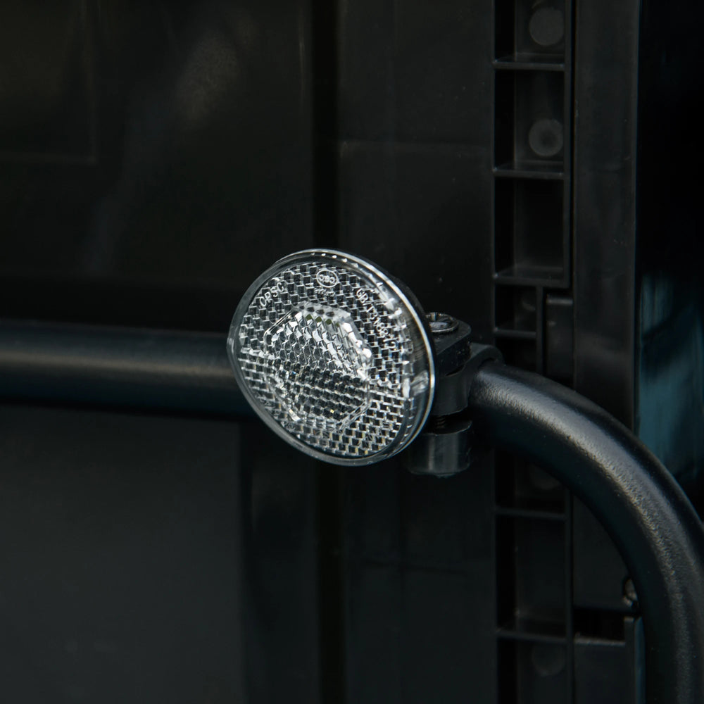 - Safe bike cart: Red flag, four reflectors and reflective strips around the wheels for visibility in the dark.