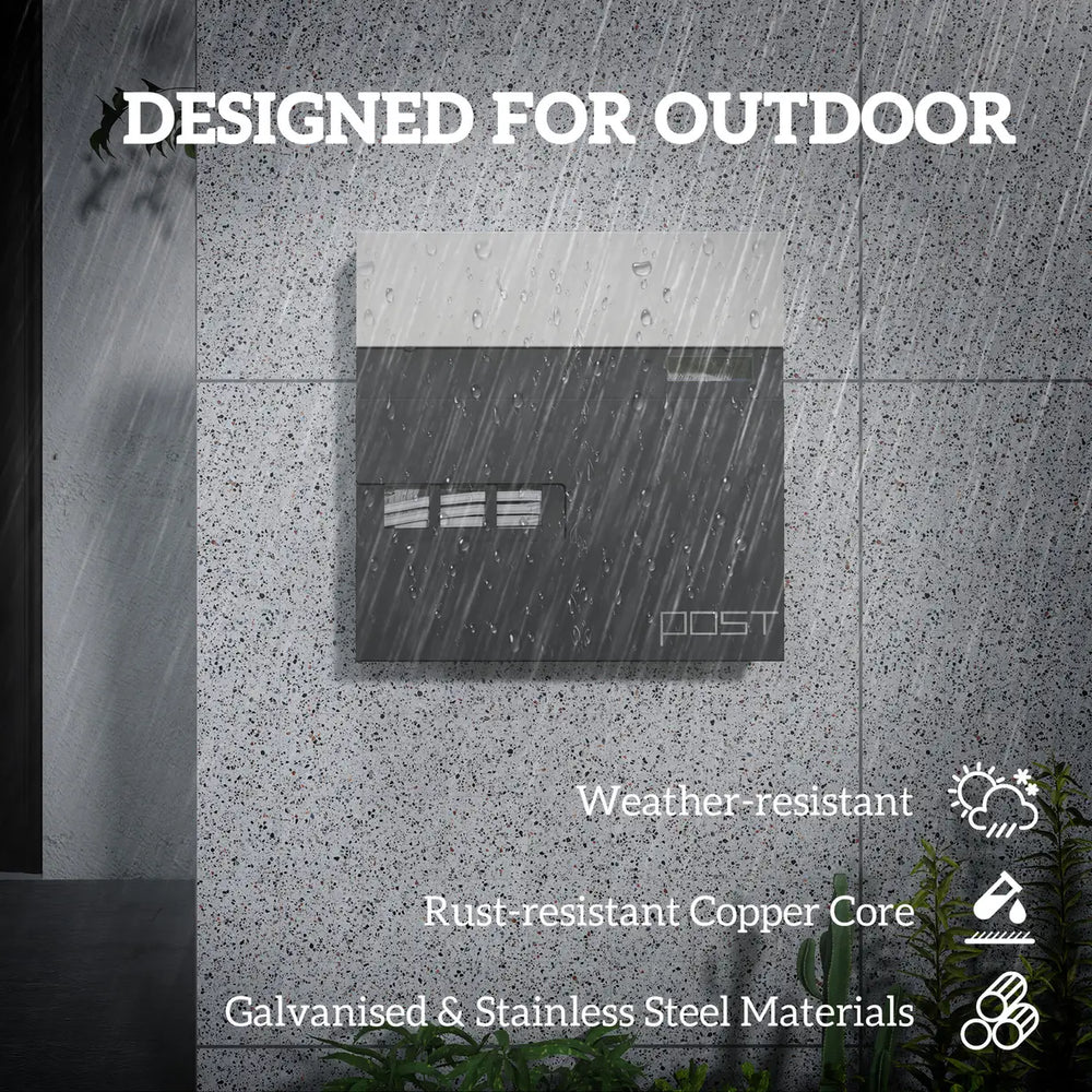 HOMCOM Locking Galvanised Steel Letterbox - Charcoal Grey/Black