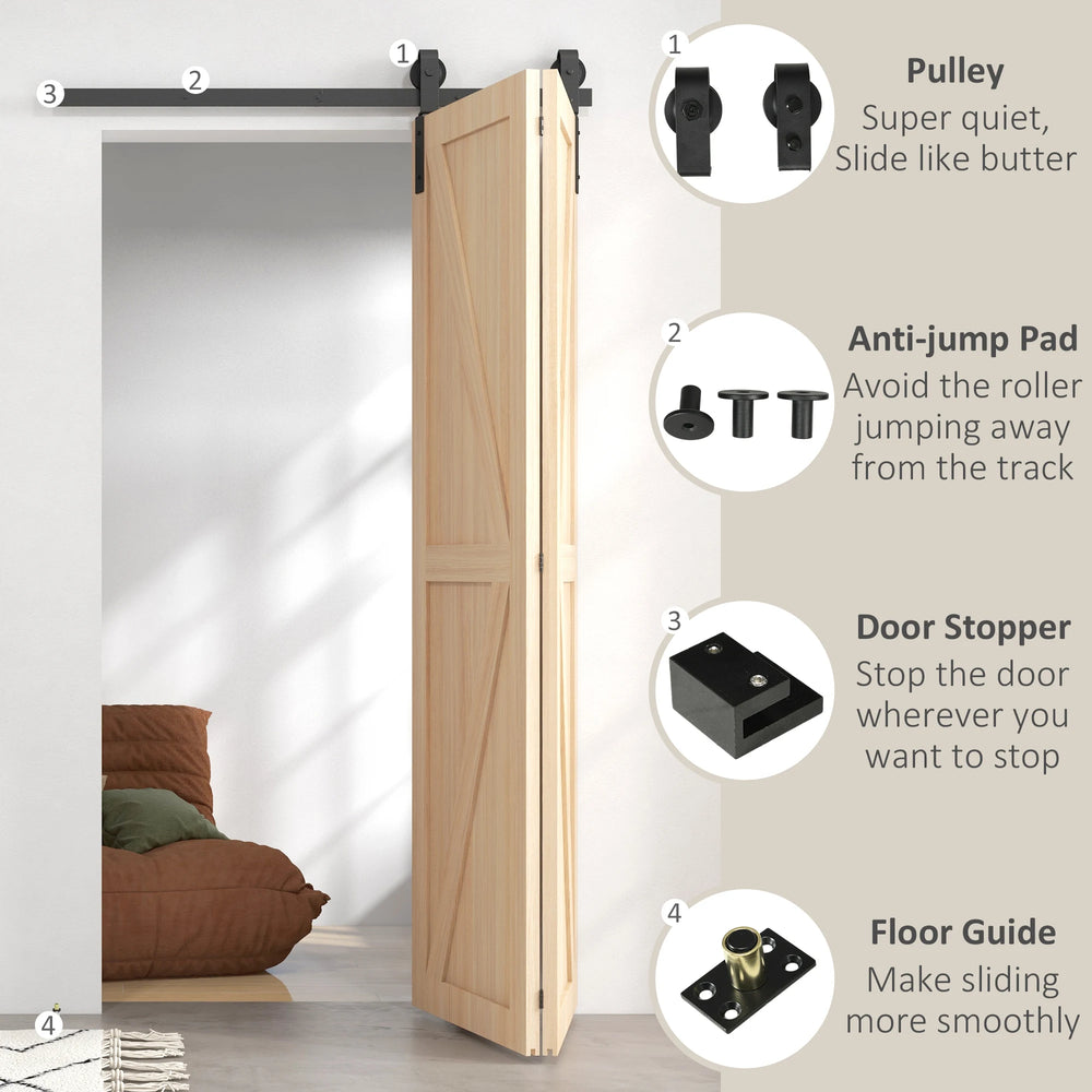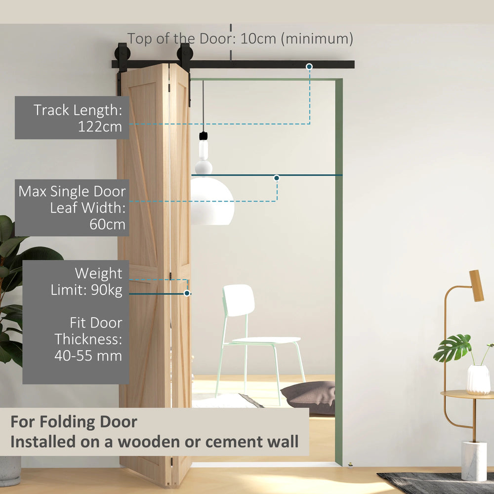 HOMCOM 4FT/122CM Bi-Folding Sliding Barn Door Hardware Track Kit, Heavy Duty Sliding Door Kit for 2 Doors with J Shape Hanger