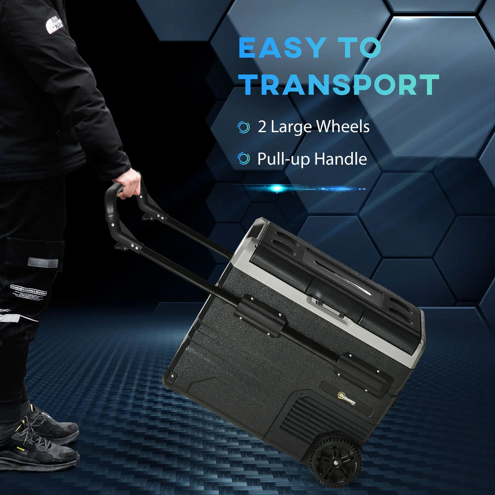 Outsunny 50L Car Refrigerator, Portable Compressor Cooler Box, Fridge Freezer w/ Inner LED Light, Foldable Handles, Cup Holders, 12/24V DC and 110-240V AC for Campervan RV Boat Travel Down to -20