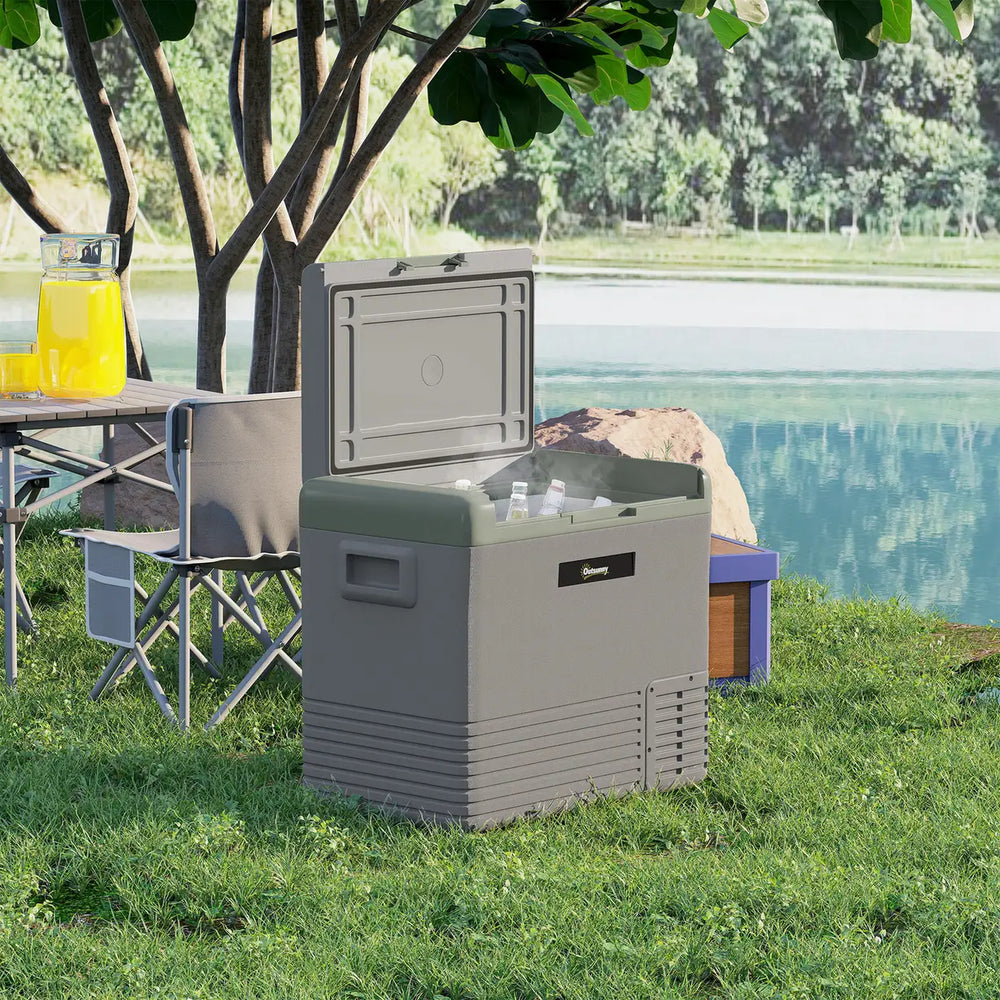 Outsunny 50L Portable Car Refrigerator - Light Green and Grey