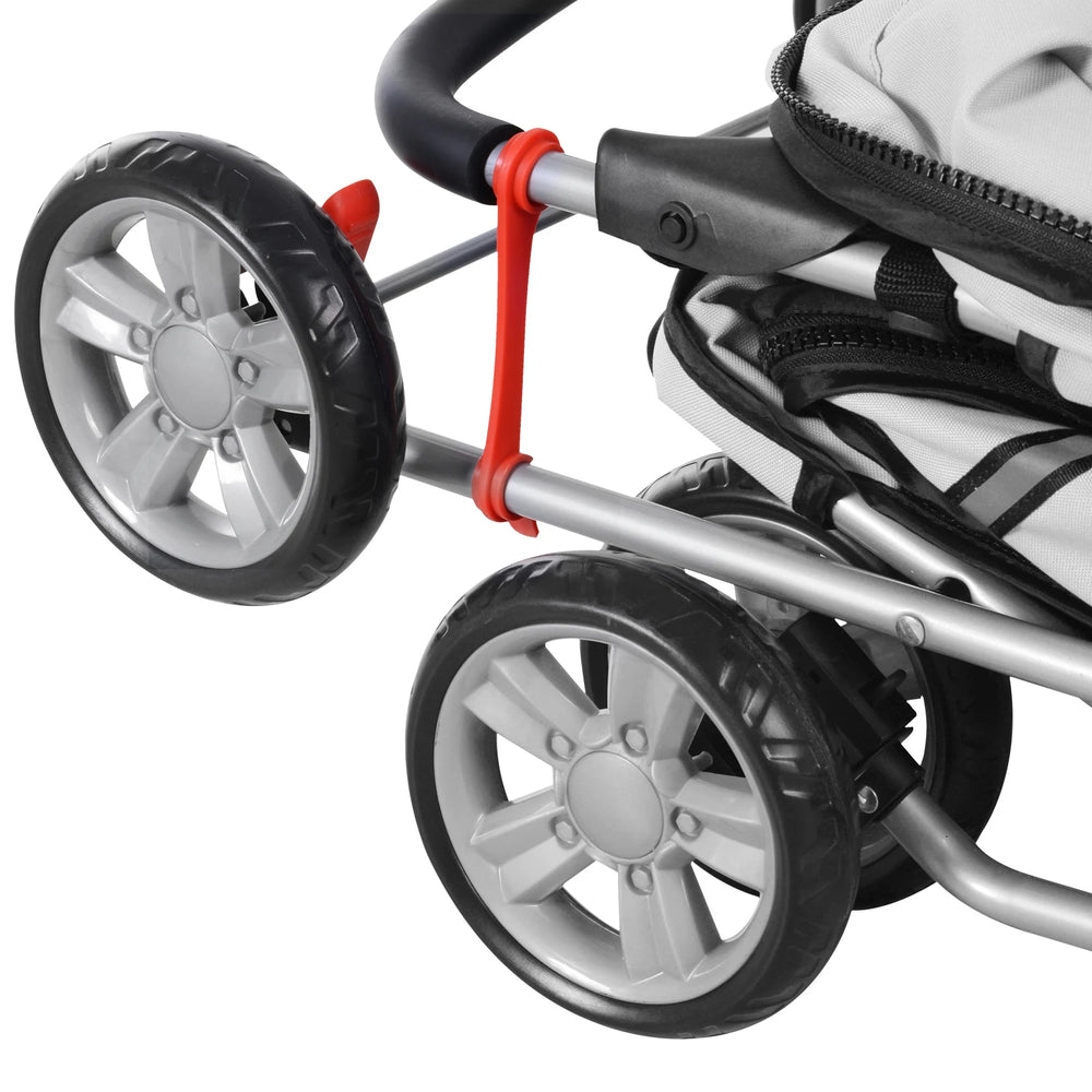 - Safety first: Front universal wheels, and rear directional wheels with brake lever included for easy parking, as well as a safety leash inside this dog buggy to keep your pet securely strapped in. 2 pairs of reflective strips on the front and back for attention.