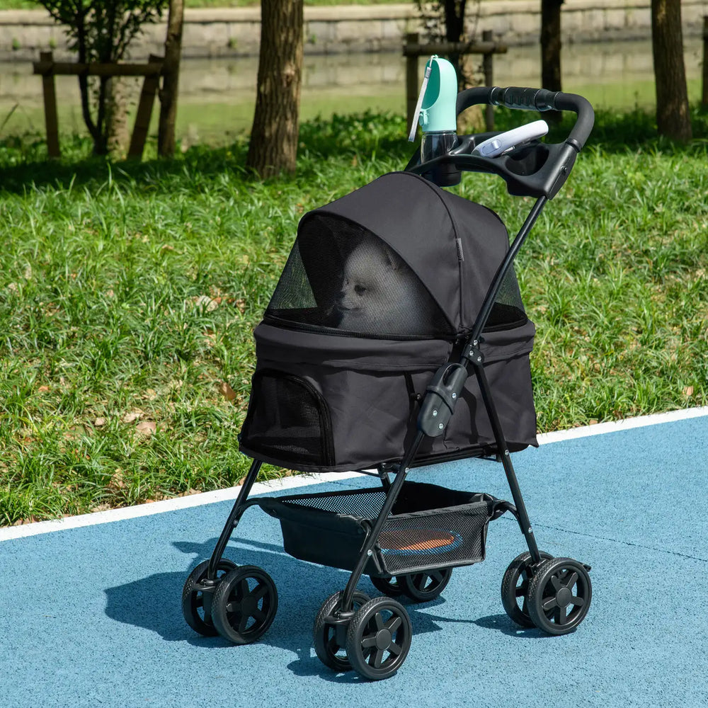 PawHut Dog Pram Dog Stroller Foldable Pet Pushchair with 4 Wheels, Safety Leashes, Cup Holder for Small Dogs, Black