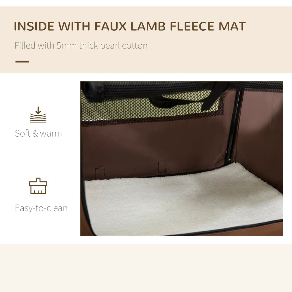 PawHut 81cm Foldable Pet Carrier, with Cushion, for Medium Dogs and Cats - Brown