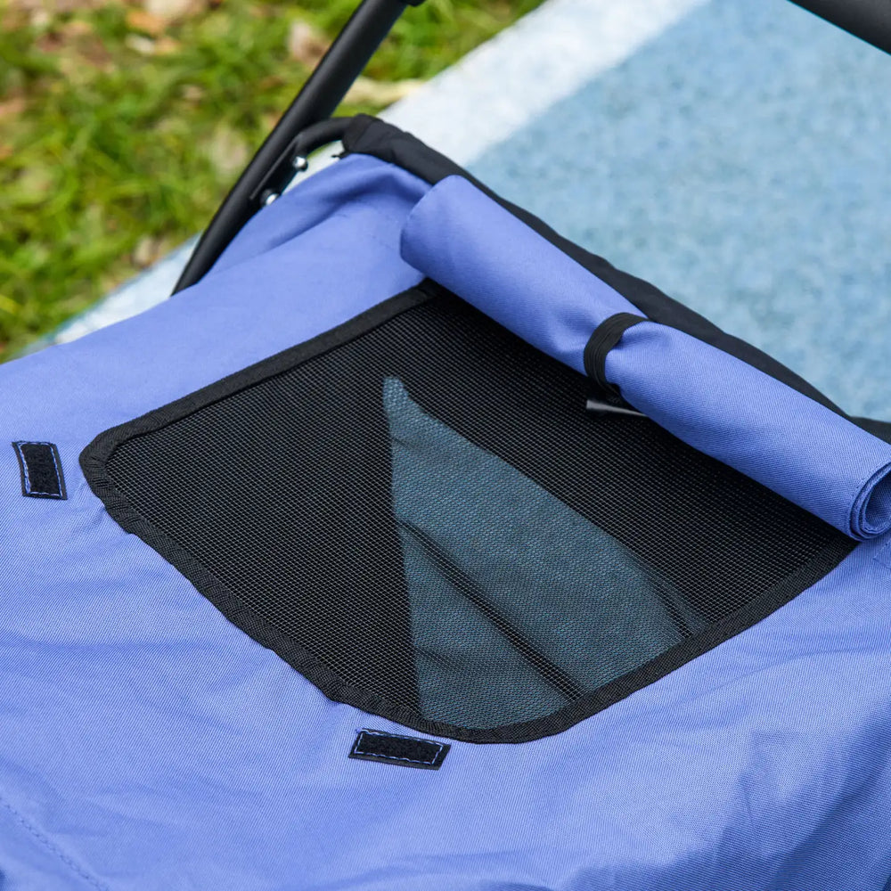 - Openable canopy and two mesh windows: Keeps the inside of this dog stroller ventilated, allowing pets to enjoy the fresh breeze as they sit comfortably inside.