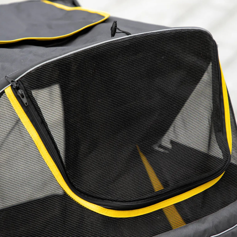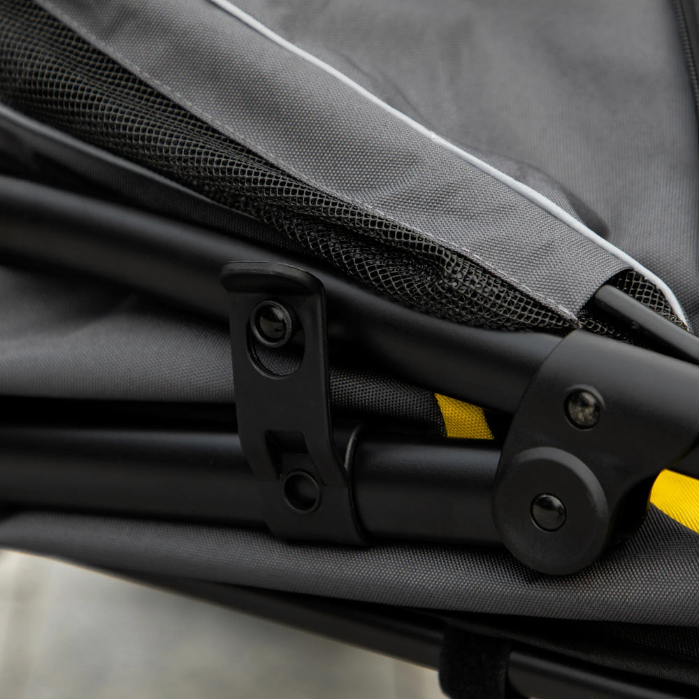 Going out should be smooth and simple for you and your pets this PawHut pet stroller makes sure of it. They'll sit in this spacious buggy, enjoying the wind flow through the mesh windows, keeping them cool and comfortable. The leashes ensure they're secure, whilst the EVA wheels with shock absorbers make their ride a lot smoother. To prevent the bad weather from disrupting travel plans, we prepare the rain cover for this dog pram to make sure you travel great, have an adventure with PawHut!