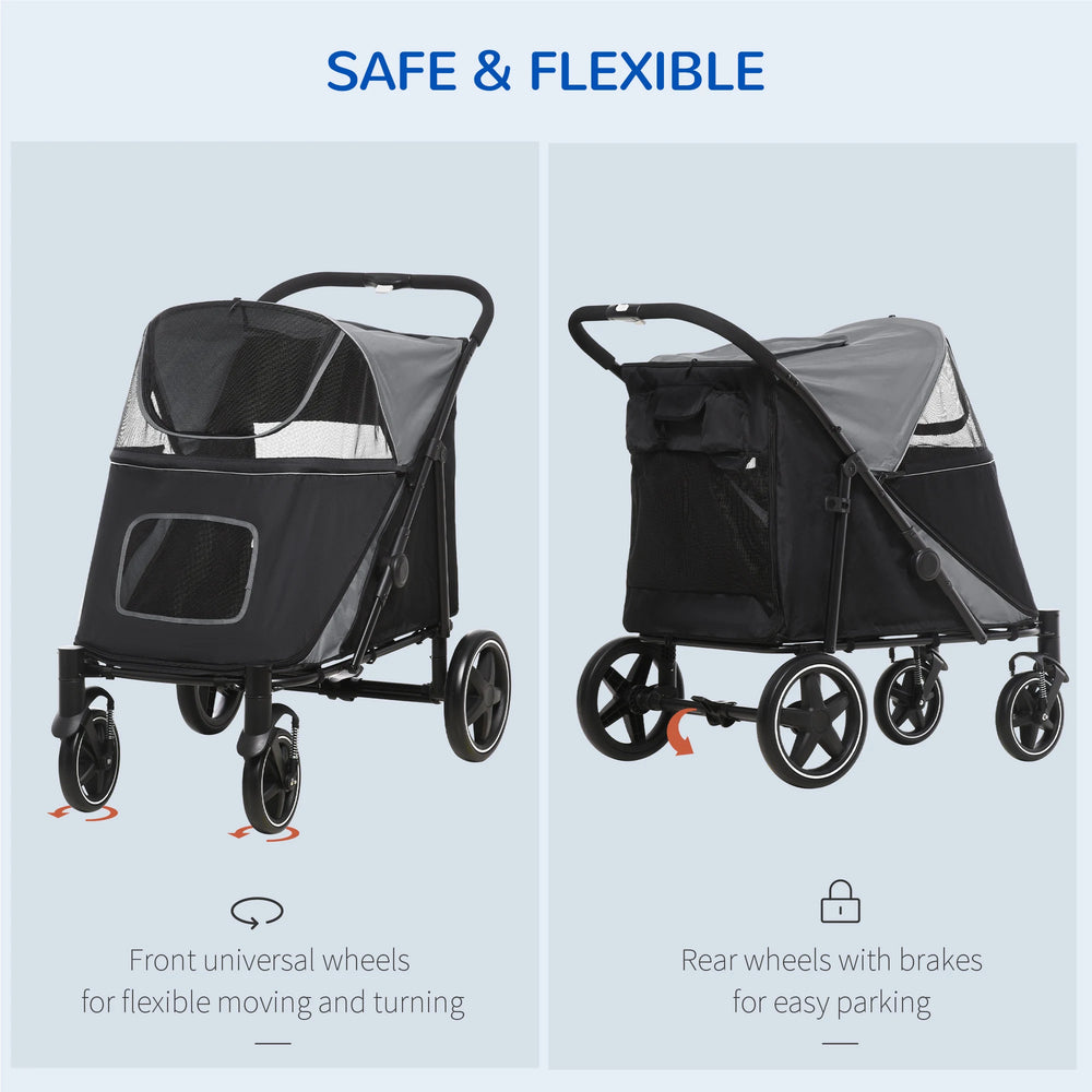 PawHut 4 Wheel Pet Stroller with Rain Cover for Medium and Large Dogs - Black