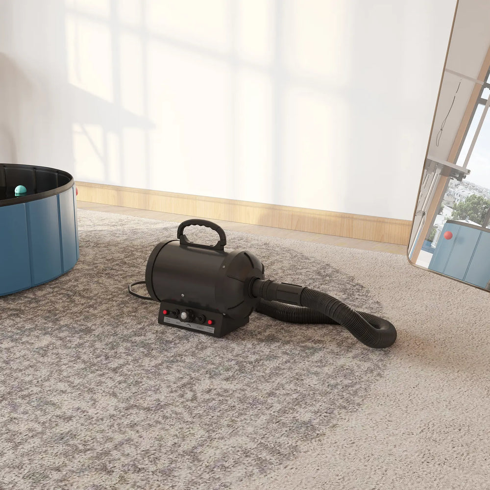 PawHut Dog Hair Dryer Pet Grooming Blaster Dryer Blower Adjustable Temperature Speed with 2.1M Flexible Hose 3 Nozzles - Black