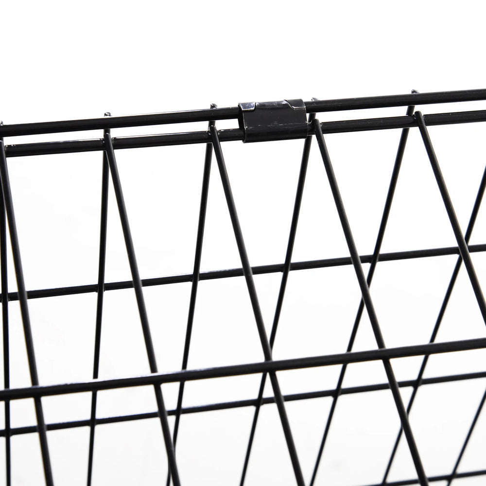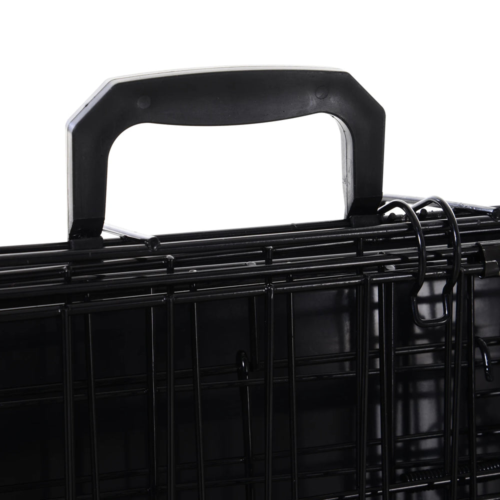 Whether it's for taking your dog or puppy on car journeys, giving them a place for time out or keeping them somewhere secure when needed, this cage will do the job efficiently and effectively. Made from rust-resilient metal for reliability and security, it is made into a trapezoidal design to help utilize space more efficiently. With a removable bottom tray for easy cleaning, it is finished with a large and easy-open door and a handle for comfortable carrying.