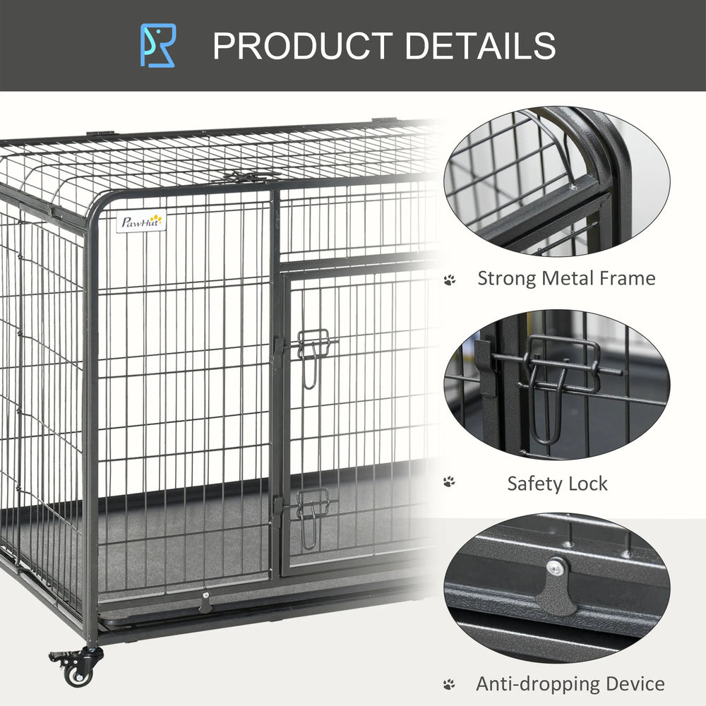 PawHut Metal Dog Cage Kennel Locking Door & Wheels Removable Tray Openable Top For Extra Large Pets 125 x 76 x 81 cm