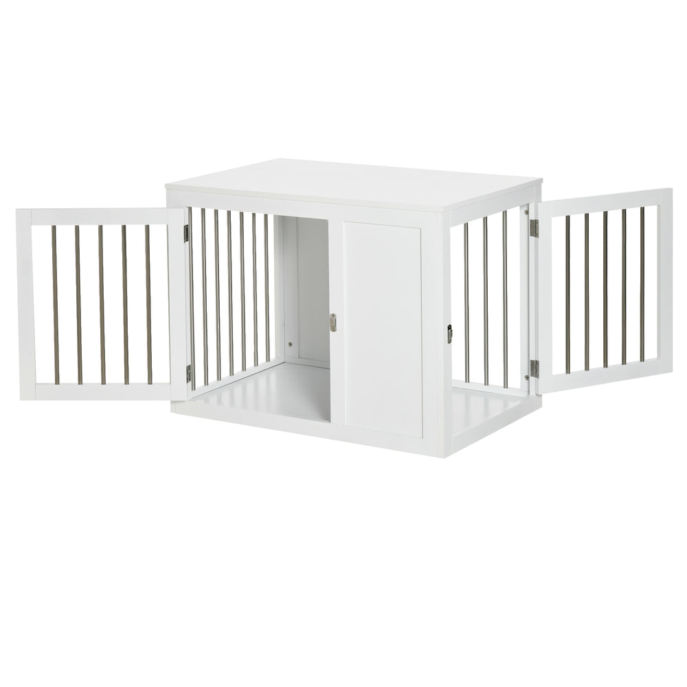 PawHut 2-in-1 Dog Cage and Side Table, with Two Lockable Doors, for Medium Dogs - White