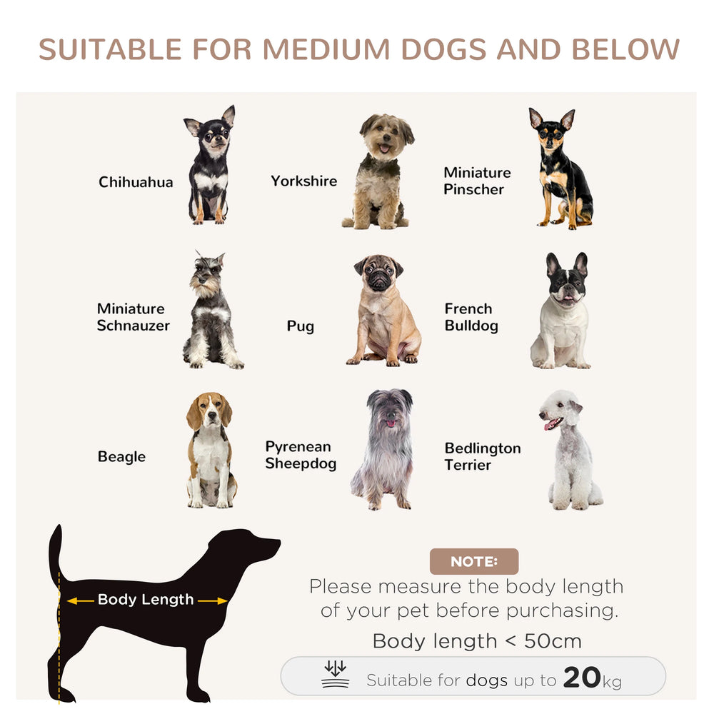 - Suitable for medium dogs up to 20kg and 50cm in body length