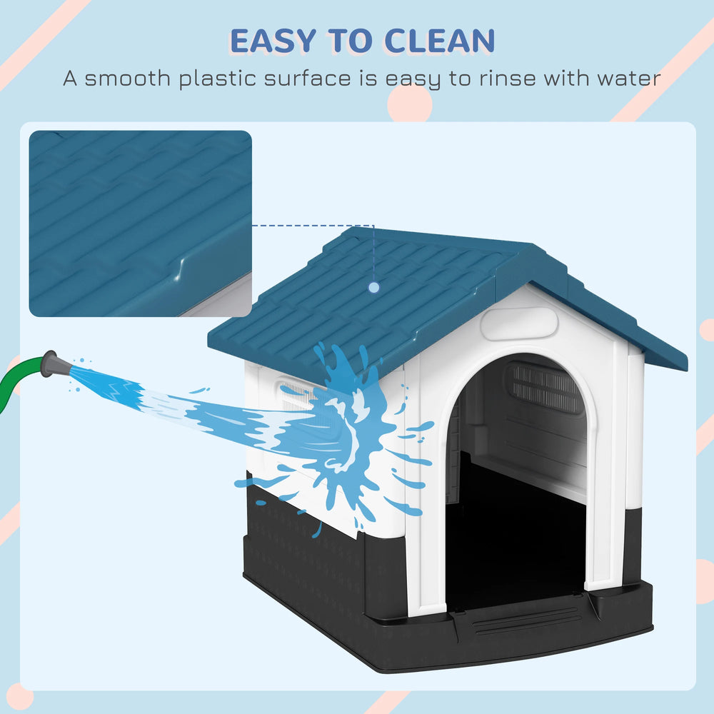 PawHut Plastic Dog Kennel with Windows, for Garden Patio, Miniature and Small Dogs, 80 x 69 x 76cm - Blue