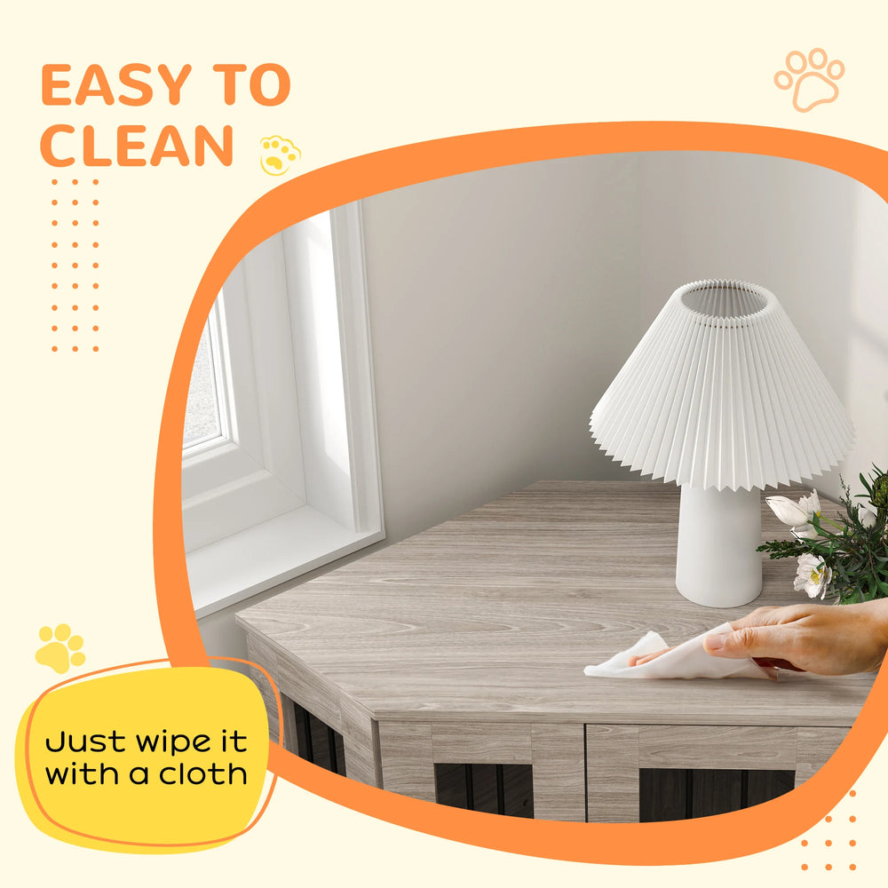 - Stylish appearance: Featuring a sleek brown walnut wood grain finish, this dog crate effortlessly compliments your existing dcor. Its minimalistic design adds a touch of sophistication to any room, making it a seamless addition to your home.
