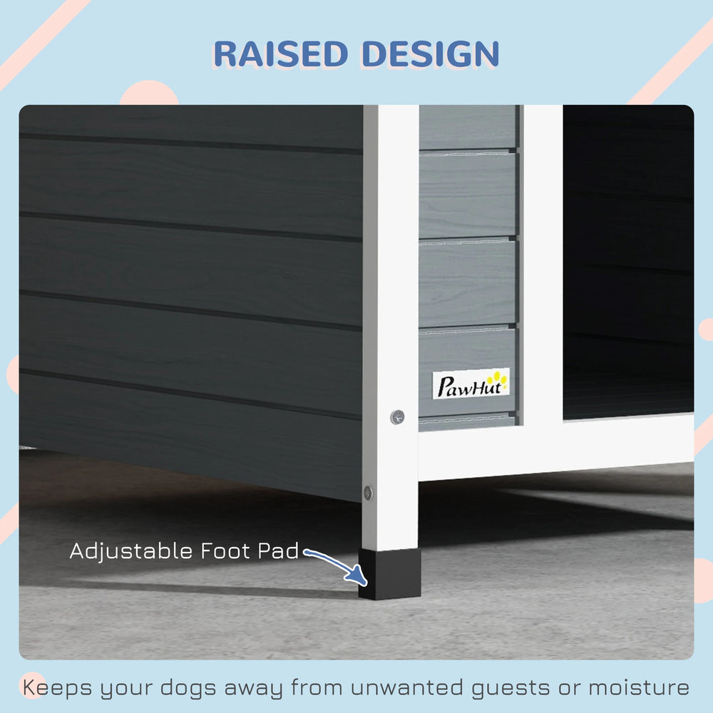 Transforming your outdoor space into a cosy pet retreat, this PawHut dog kennel features a slanted roof for protection against rain and sunlight, keeping your pet's space cool and dry. Made with treated wood, it remains strong and firm in all weather conditions, making it suitable for year-round outdoor use. Elevated with adjustable footpads for extra stability, you can remove the floor for simple cleaning. Give four-legged friends a clean and comfortable home they will love!