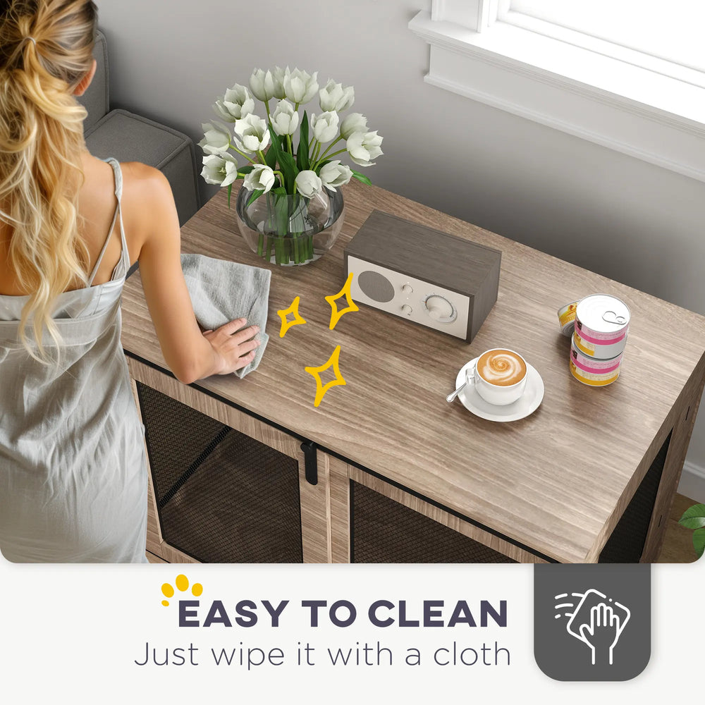- Dual-Access Design: This dog kennel table features a barn-style front door and a latched side door for easy cleaning, feeding, or playtime. Three-sided ventilation ensures all-day pet comfort.