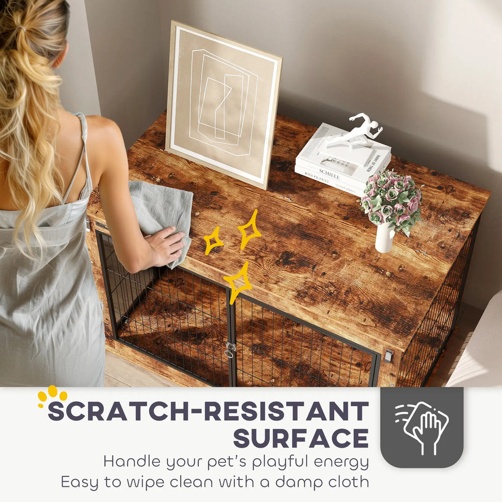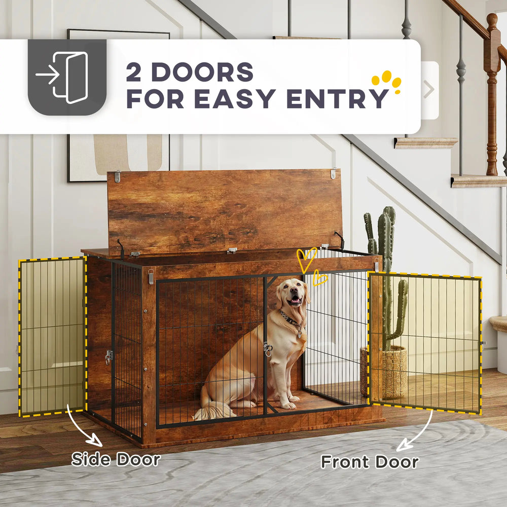 PawHut Dog Crate Furniture with Openable Top, Two Doors, for Extra Large Dogs, Rustic Brown