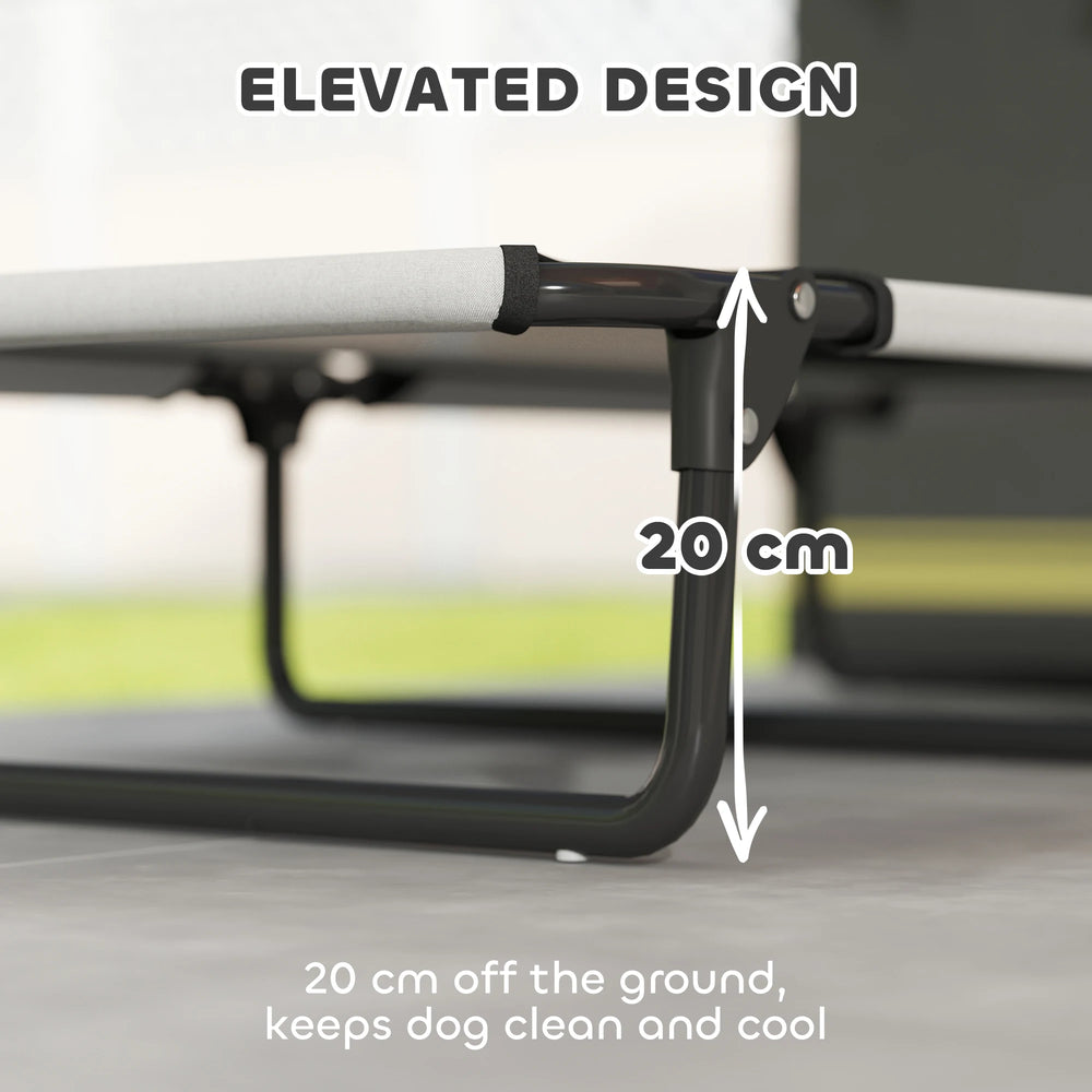PawHut Portable Raised Dog Bed, Elevated Pet Cot with Breathable Mesh for Indoor Outdoor, for Large Dogs, Light Grey