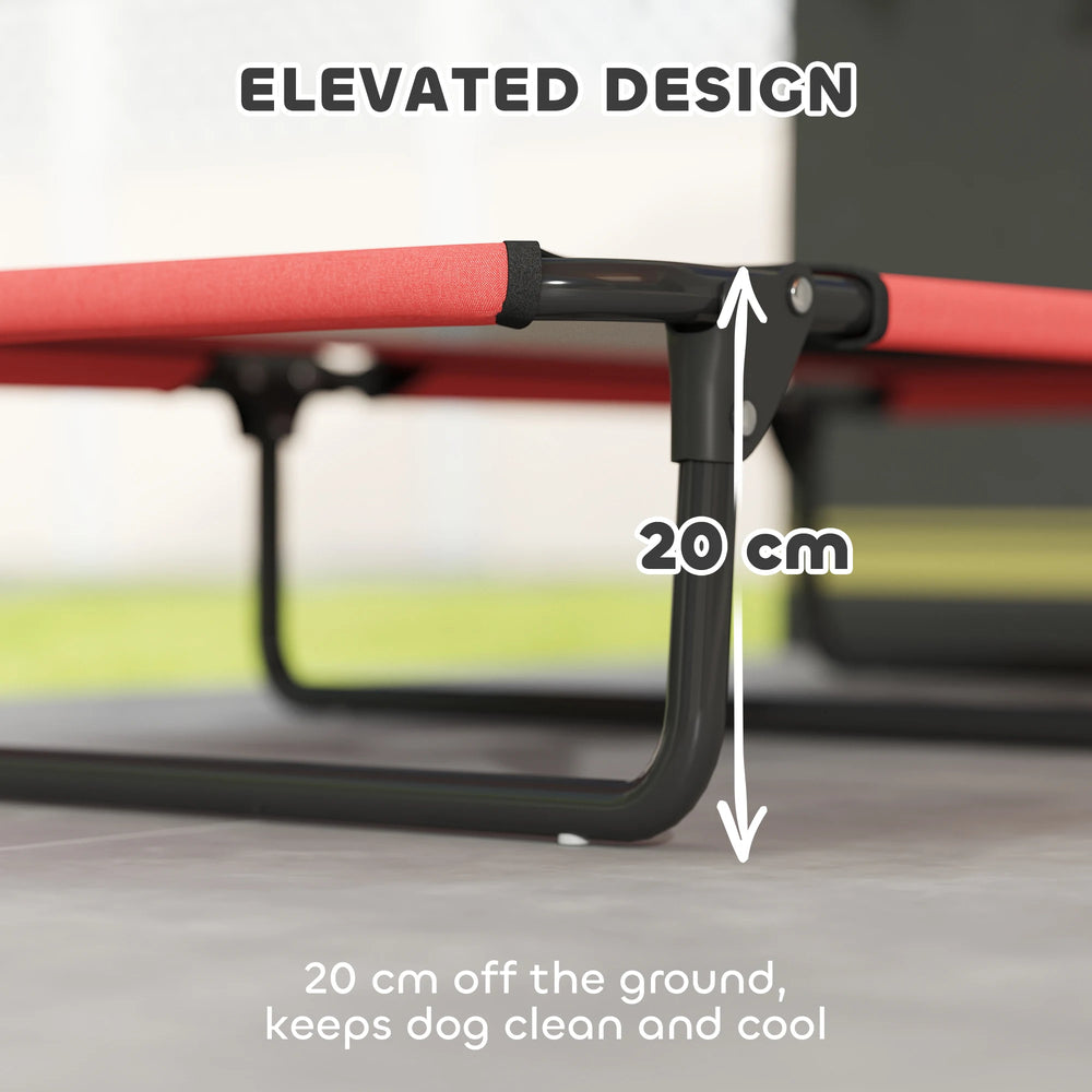 PawHut Portable Raised Dog Bed, Elevated Pet Cot with Breathable Mesh for Indoor Outdoor, for Large Dogs, Red