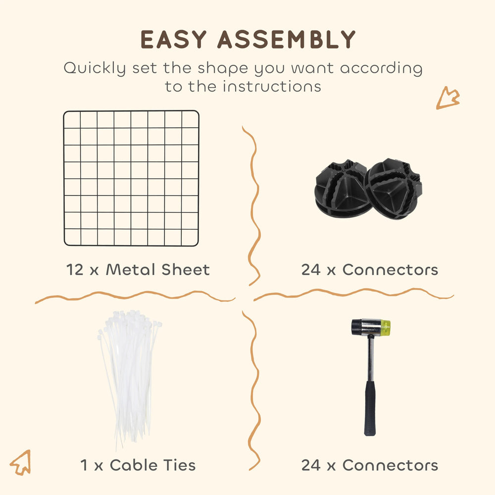 - Can be assembled in any shape you wish, simply connect via sides and secure