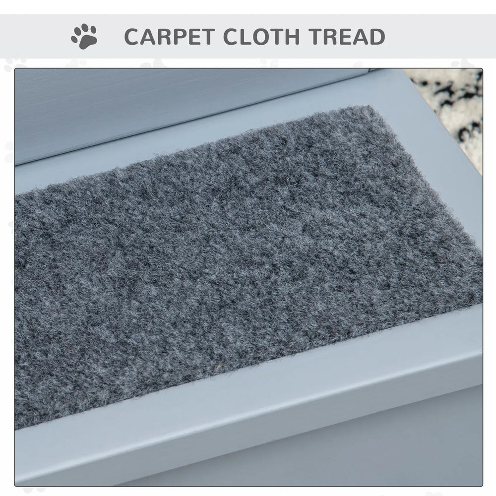 PawHut 3 Step Wooden Dog Steps Pet Stairs for Dogs, Cat Ladder for Bed Couch with Storage Grey