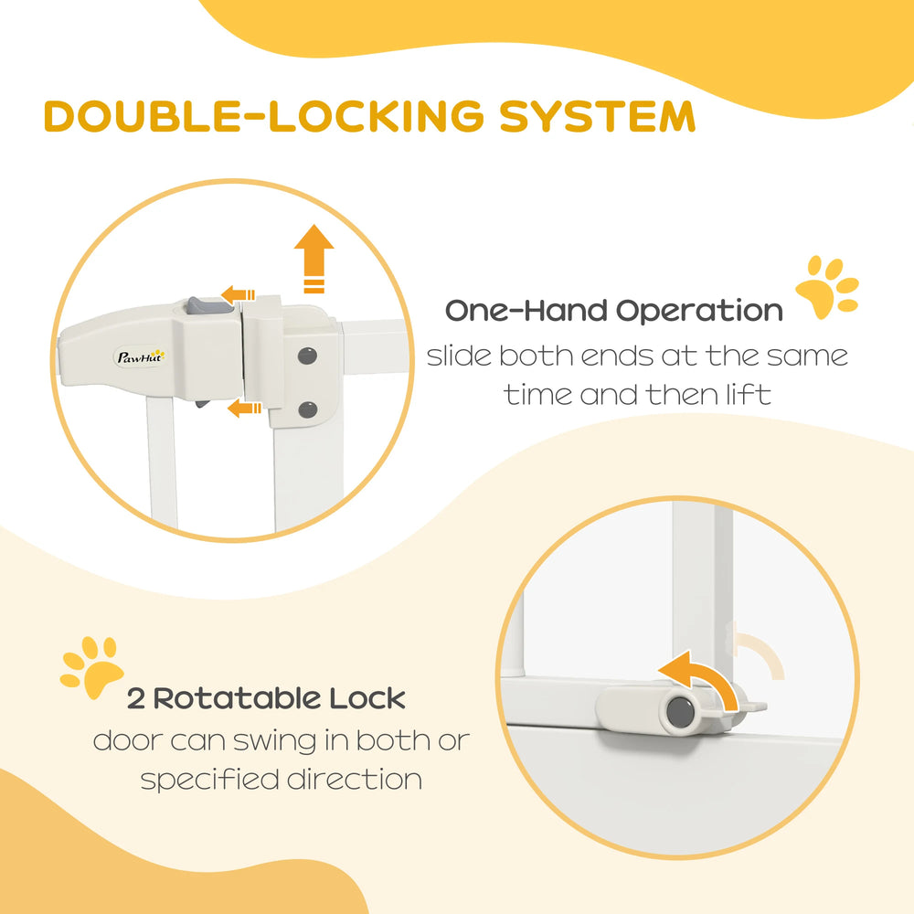 PawHut Metal 74-80cm Adjustable Pet Gate Safety Barrier w/ Auto-Close Door White