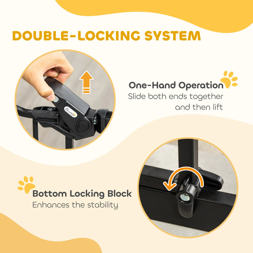 PawHut Extra Tall Pet Gate, Indoor Dog Safety Gate, with Cat Flap, Auto Close, 74-80cm Wide - Black