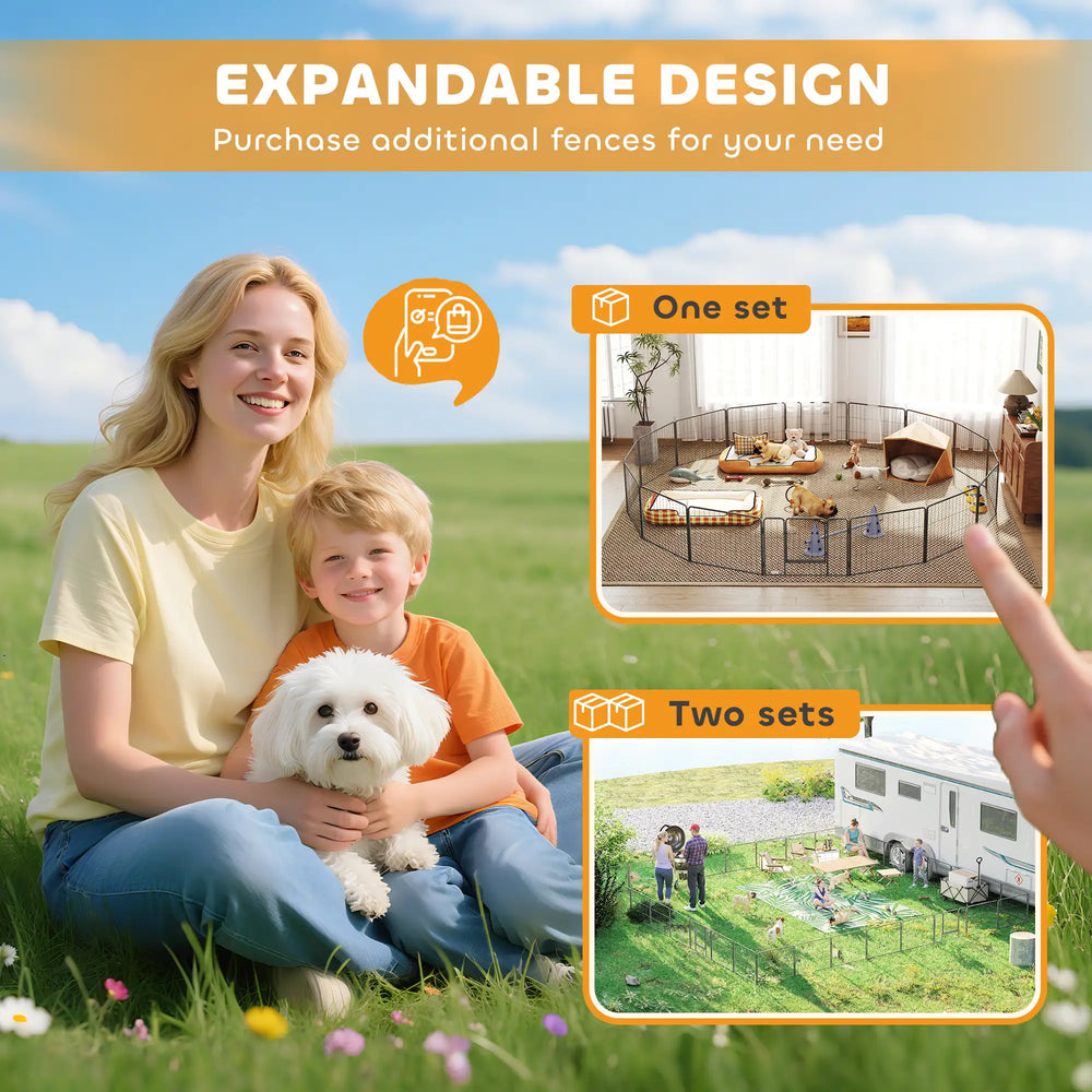 With this PawHut dog play pen, pets have a safe space to be themselves, whilst giving you peace of mind. With 16 panels, it's flexible and spacious, providing lots of room to roam, play and relax - pets won't feel boxed in. Features ground stakes that go into the ground for stability, you'll set this playpen into different shapes to fit your layout, whether it's inside or outside. For pets, it's freedom and security and for you, it's knowing they're safe and sound, with lots of space to enjoy.