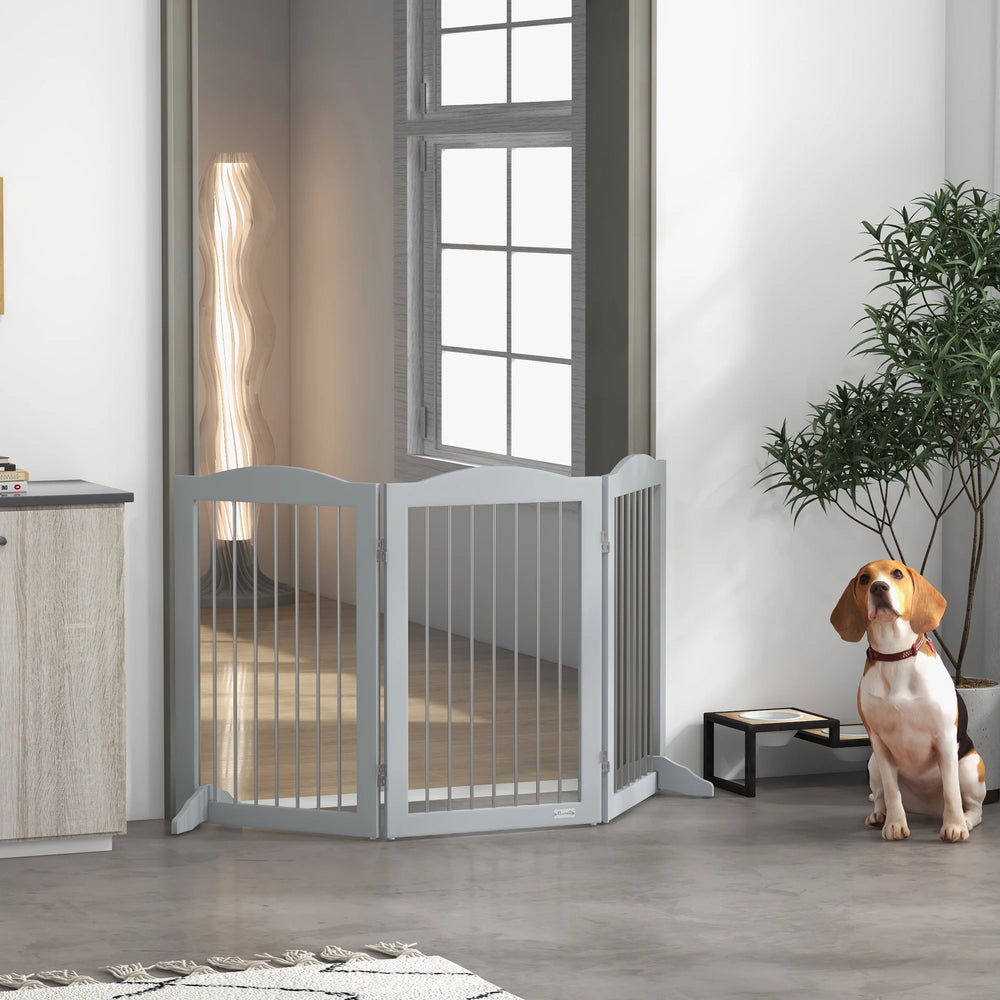 PawHut Foldable Dog Gate, Freestanding Pet Gate, with Two Support Feet, for Staircases, Hallways, Doorways - Grey