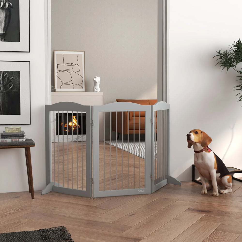 Need pets away from certain areas? This PawHut pet gate is your solution. With three panels, held together by strong hinges, you can set up into different shapes ideal for doorways, hallways, staircases, bedrooms and more. Durable MDF structure, it stays firmly upright, whilst the wide support feet provide extra stability, making it freestanding. A quick and easy setup, this wooden dog gate must be a safe and effective way to stop pets from going where they shouldn't.