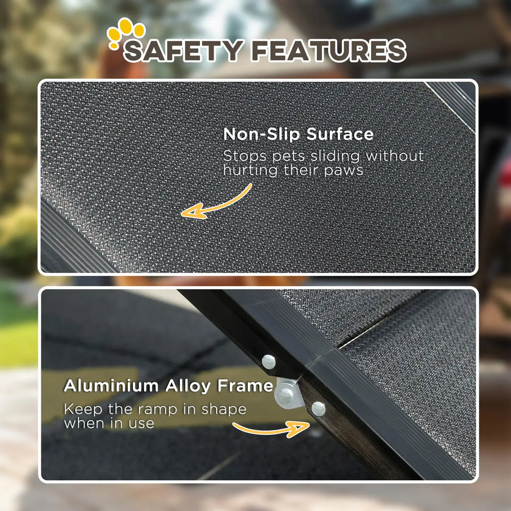 PawHut Folding Dog Ramp for Car, Portable Pet Ramp, with Non-Slip Surface, Aluminium Alloy Frame, for XL Dogs