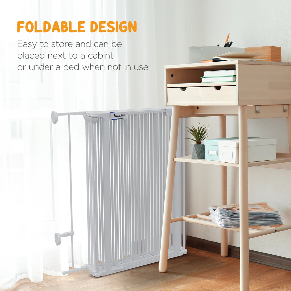 - Double locking system: Keeps your pets safely inside this dog playpen. You can open this stairgate with one hand just press the upper and lower buttons.