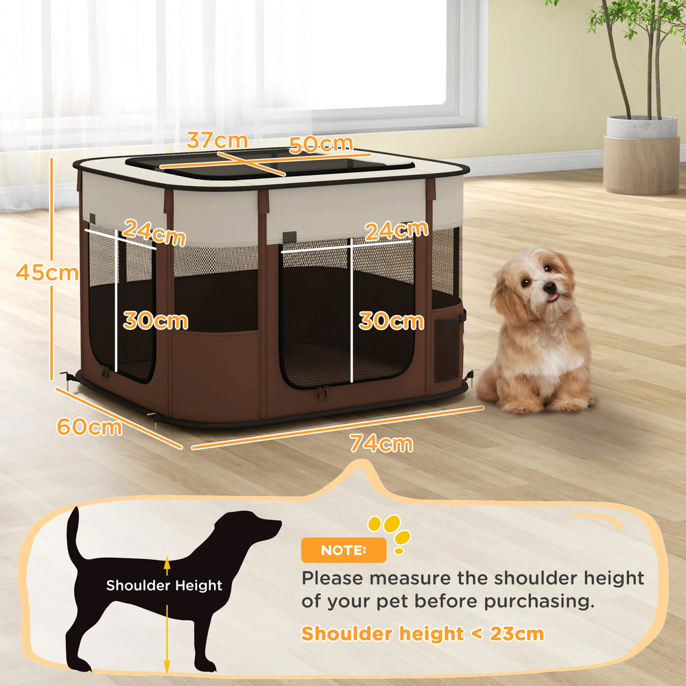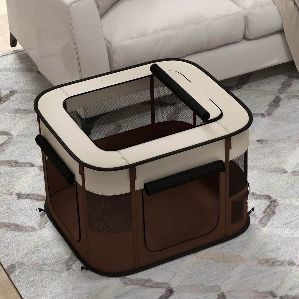 PawHut Foldable Dog Pen with Storage Bag for Indoor/Outdoor Use, Portable Pet playpen, with Ground Stakes - Brown