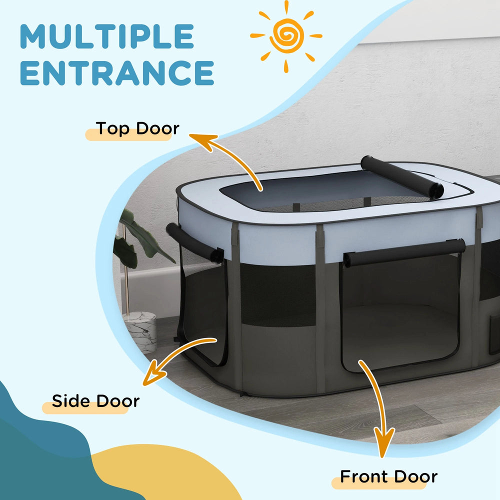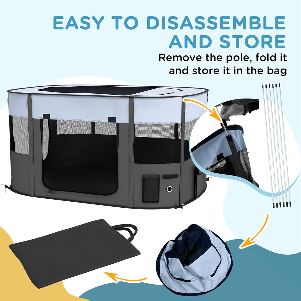 PawHut Foldable Dog Pen with Storage Bag for Indoor/Outdoor Use, Portable Pet playpen, with Ground Stakes - Grey