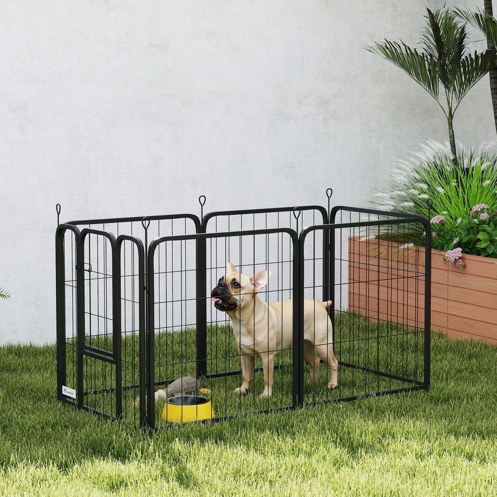 PawHut Six-Panel Dog Playpen with Door, for Small Dogs, Indoors, Outdoors, 60cm Tall, Black