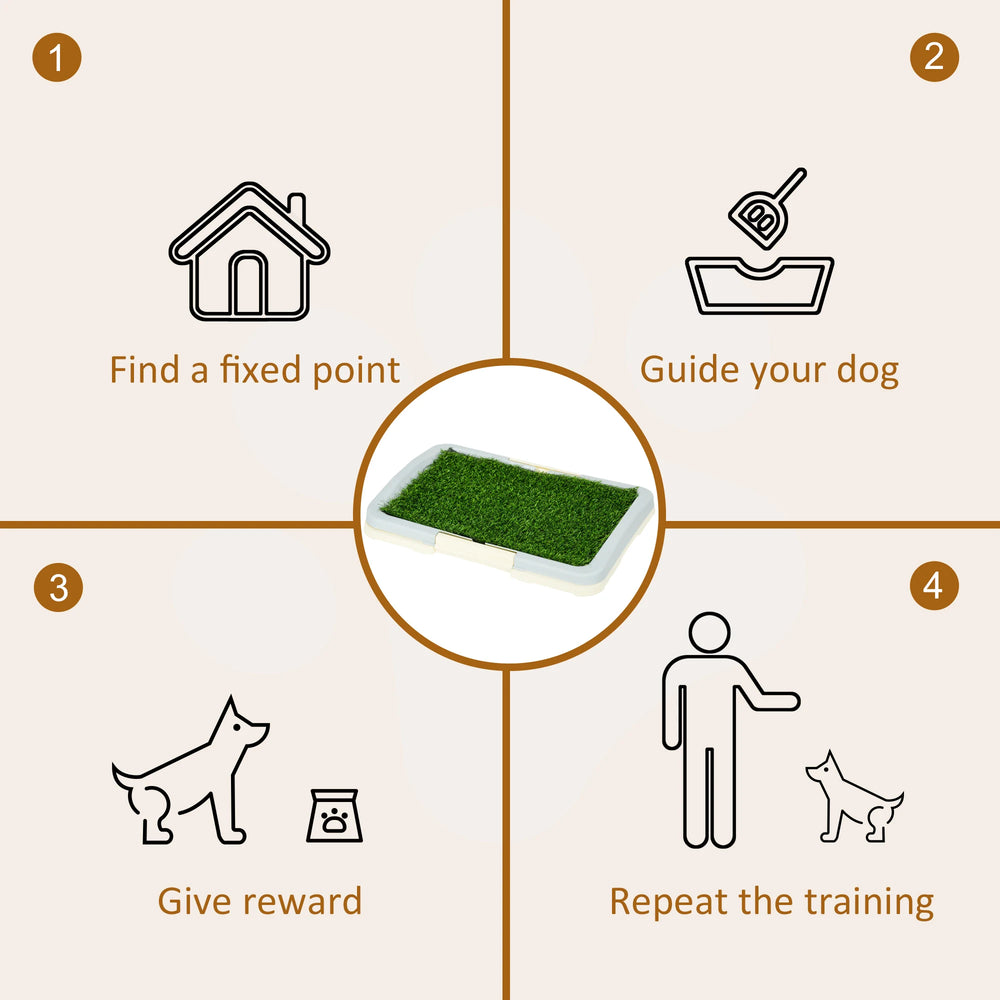 PawHut Puppy Training Pad, Indoor Portable Puppy Pad, with Artificial Grass, Grid, Panel, Tray, 46.5 x 34cm