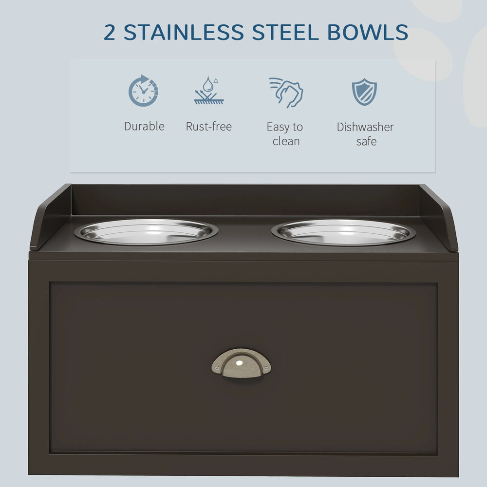 PawHut Stainless Steel Raised Dog Bowls, with 21L Storage Drawer for Large Dogs - Brown