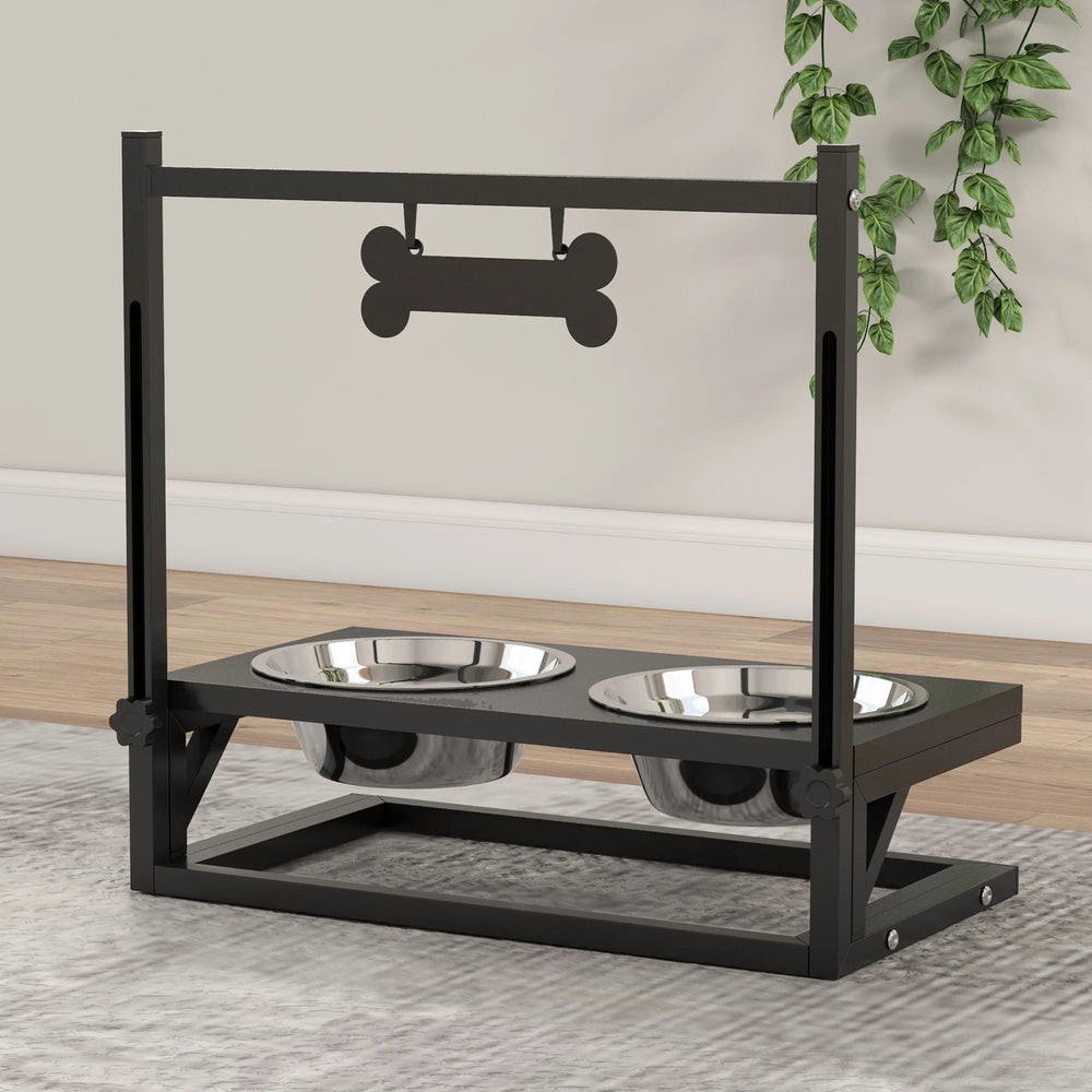 Treat pets like royalty with this PawHut elevated pet feeder. Adjustable height suits different sizes and breeds, so they won't strain their neck and back. Plus, there's a unique bone-shaped metal sheet, allowing you to personalise it with your pet's name. It's practical, stylish and just what your beloved companion deserves. Transform the way your dog eats and drinks, making every mealtime a comfortable experience.