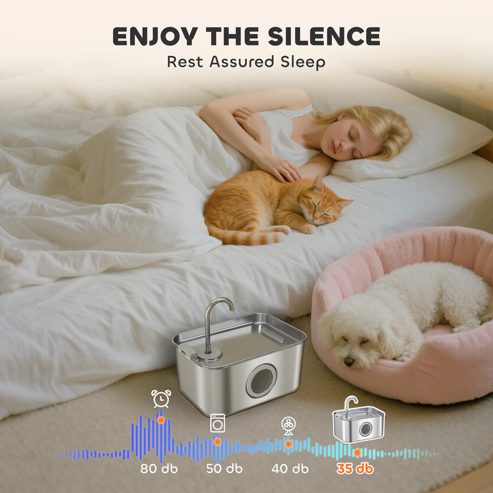 - Robust stainless steel: Crafted from 304 stainless steel, this cat water fountain ensures long-lasting use and promotes your pet's health by preventing bacterial growth, especially those with chin acne or other sensitive skin issues.