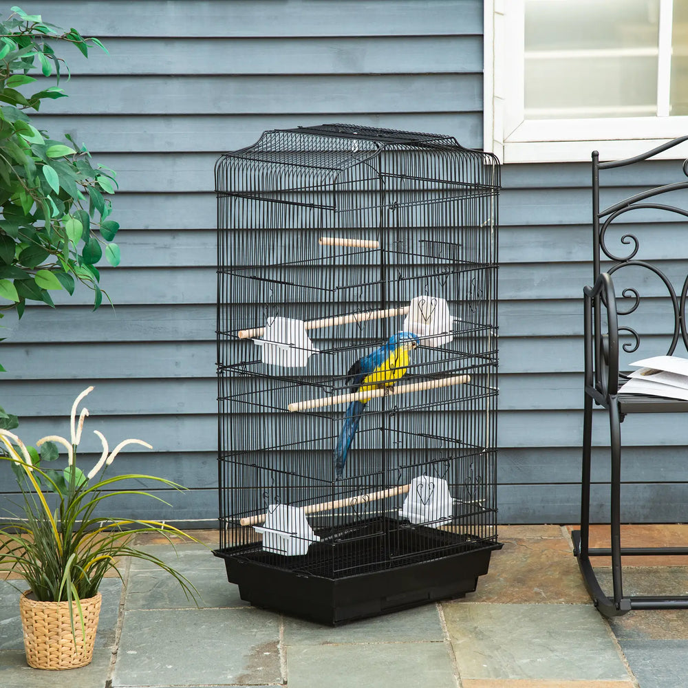 PawHut Large Metal Bird Cage with Stand, Perches, Food Bowls, Swing, for Budgies, Parakeets, Black