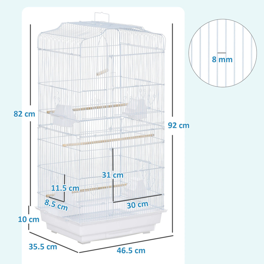 PawHut Large Metal Bird Cage with Perches, Food Bowls, Swing, for Budgies, Parakeets, White