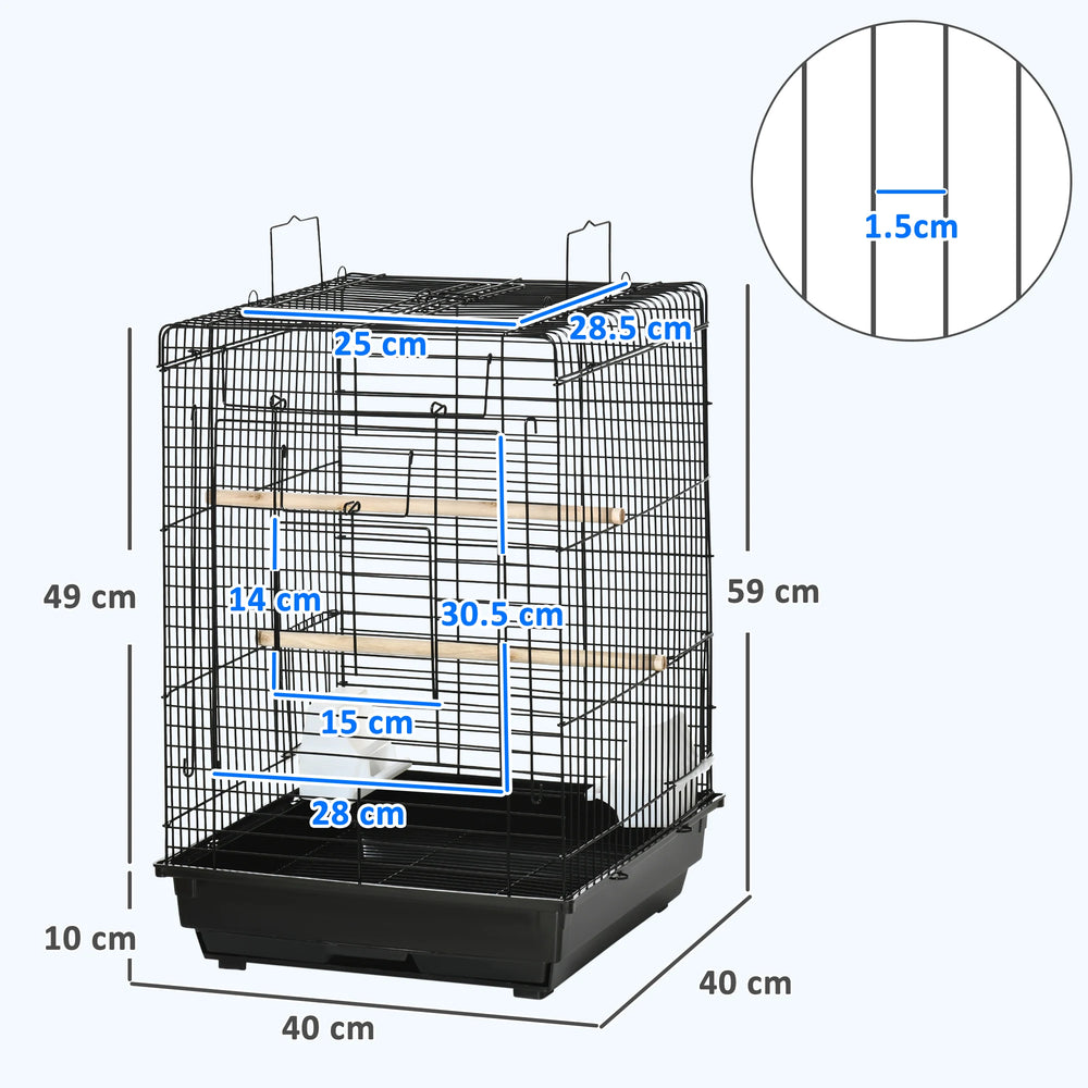 PawHut Steel Bird Cage with Openable Top, Stand, Tray, Handles, Feeding Bowls for Parakeet, Finch - Black
