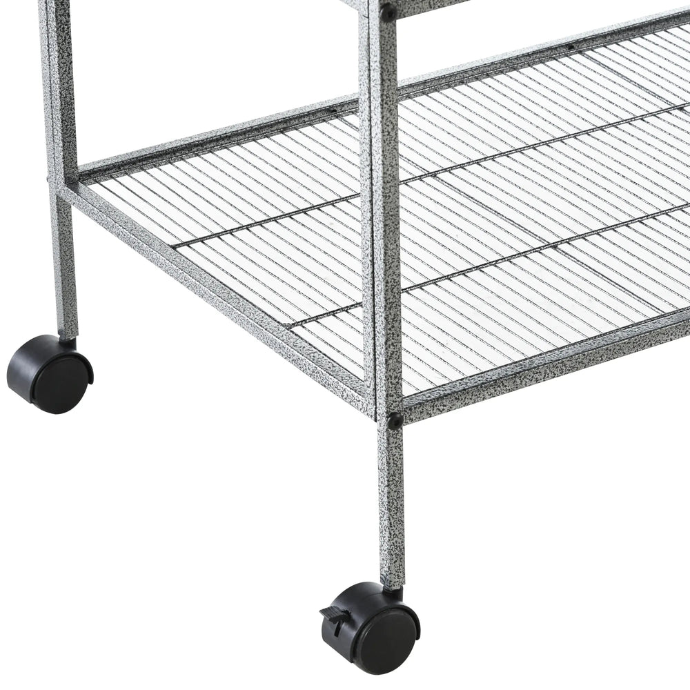 - PORTABLE ROLLING STAND: Effortlessly move this rolling bird cage with stand from a spot to the next. The 4 universal wheels, 2 with brakes, make move your feathered friend quick and secure. Overall Dimension: 95L x 45.5W x 102H cm.