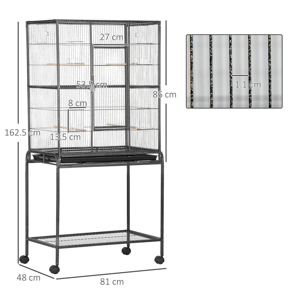 PawHut Large Bird Cage Budgie Cage with Stand, Storage Shelf, Wood Perch for Parrot Canary Parakeet Cockatiels, 81 x 48 x 162.5 cm