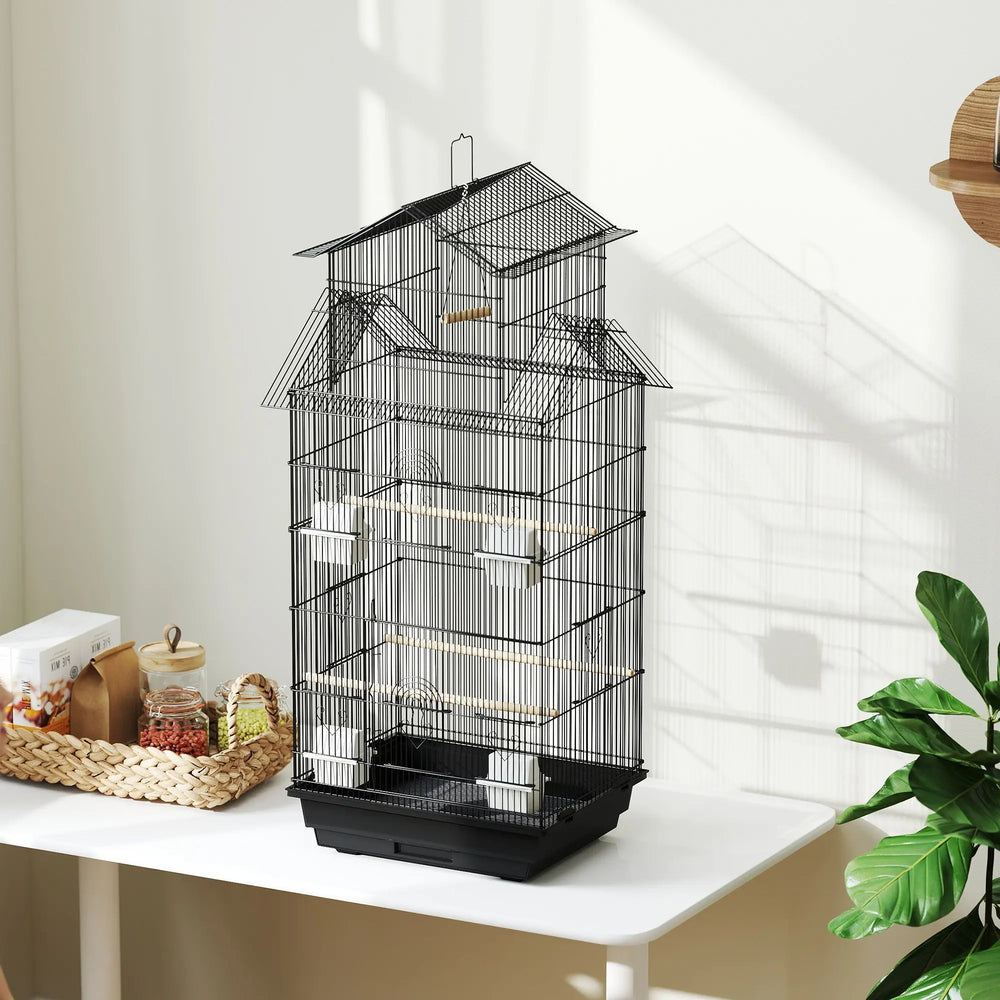 This PawHut bird cage oozes space and comfort, providing your birds with an excellent home to thrive. With three wooden perches, it's great for finches, canaries, budgies and similar birds. It has a large front door, eight sliding food doors. Enjoy this easy-to-clean cage, featuring a removable tray that can be wiped clean, whilst the bottom net separates droppings for better hygiene.
