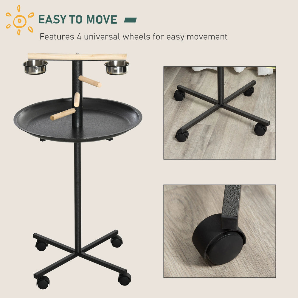 PawHut Metal Bird Table Play Stand, Bird Feeder Station Parrot Perch with Four Wheels Feeding Bowls Round Tray
